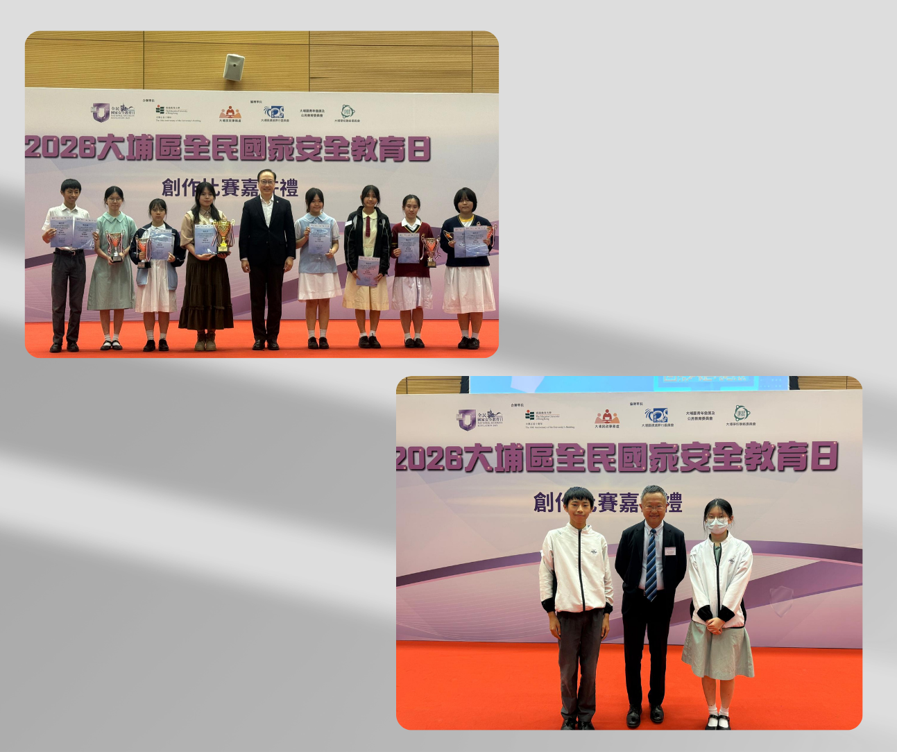 3C林楊靜及3C鄒坤成於「2026 大埔區全民國家安全教育日 — 國家安全 WhatsApp 貼圖設計比賽」中,獲得亞軍,實在可喜可賀。