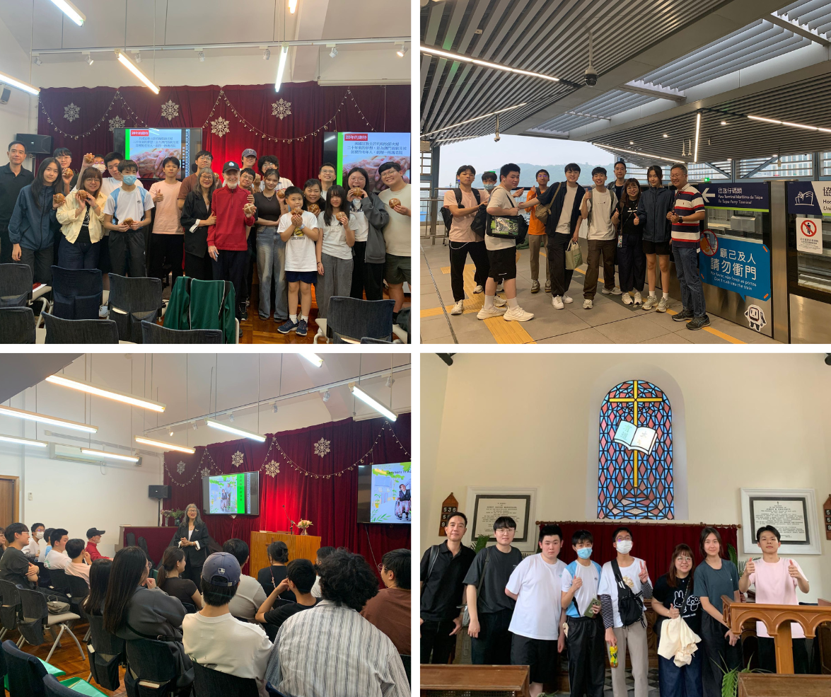 本校宗教組帶領學生前往澳門進行教會探訪及基督教歷史文化考察,旨在讓學生體會澳門的基督教歷史文化及宗教氣氛,與當地教會互相交流,並遊覽當地基督教歷史文化景點。學生到訪澳門基督教榮基堂,與弟兄姊妹交流,並參與復活節受難紀念聚會,同時亦遊覽基督教歷史遺跡,如馬禮遜墓、大三巴、澳門博物館等。