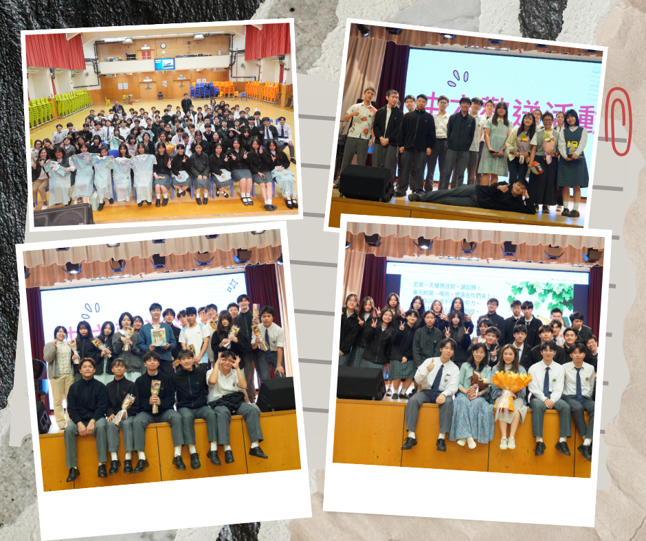 在中六的最後上課天,本校宗教組為中六同學準備了歡送及勉勵活動。透過詩歌分享、班主任及學生分享,讓同學們重溫六年來的中學生活。